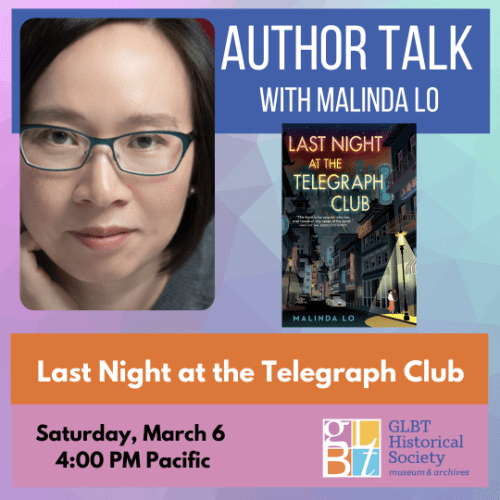 Award-winning young-adult author Malinda Lo will read selections from, and discuss, her new novel and its historical inspirations with historian Amy Sueyoshi, a professor at San Francisco State whose research specializes in Asian American and sexuality studies. 4 p.m. Saturday, March 6. Free, donations encouraged. glbthistory.org