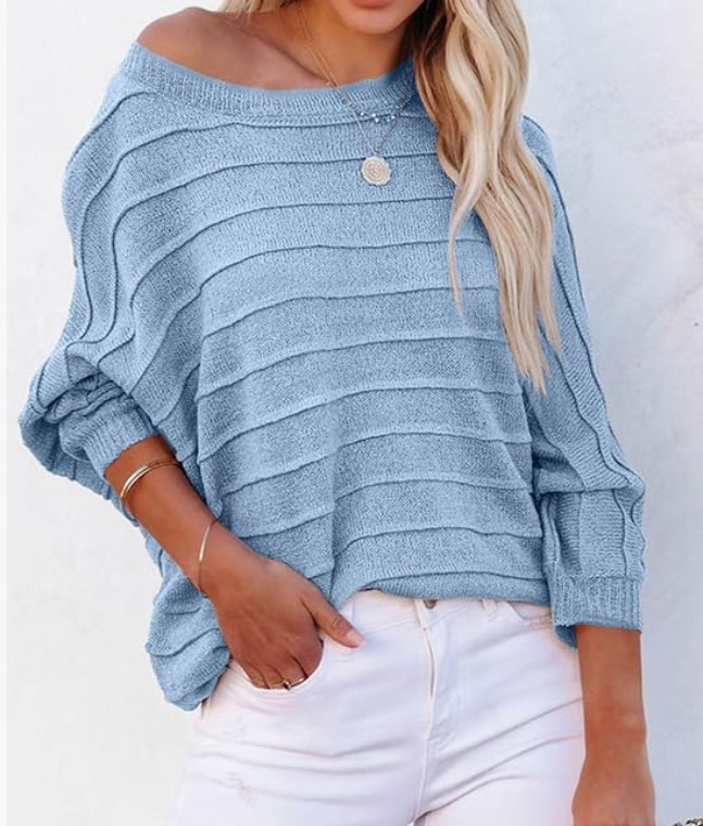 With its off the shoulder design, puff long sleeves, crew neck, solid color, loose fit, lightweight, and casual style, this sweater is perfect for any occasion. It’s a versatile knit sweater that can be dressed up or down, depending on your mood. Amazon $32.00