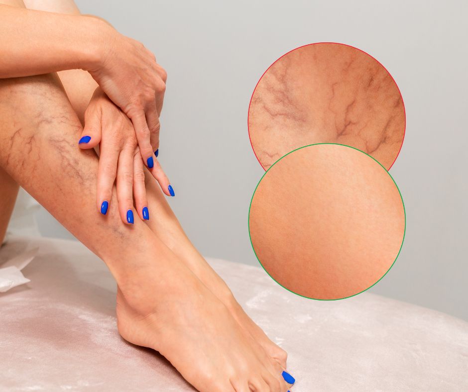 Spider veins are usually painless and are more of a cosmetic concern for most but rarely can cause a dull ache or burning sensation, especially after standing on one’s feet for prolonged periods of time.
