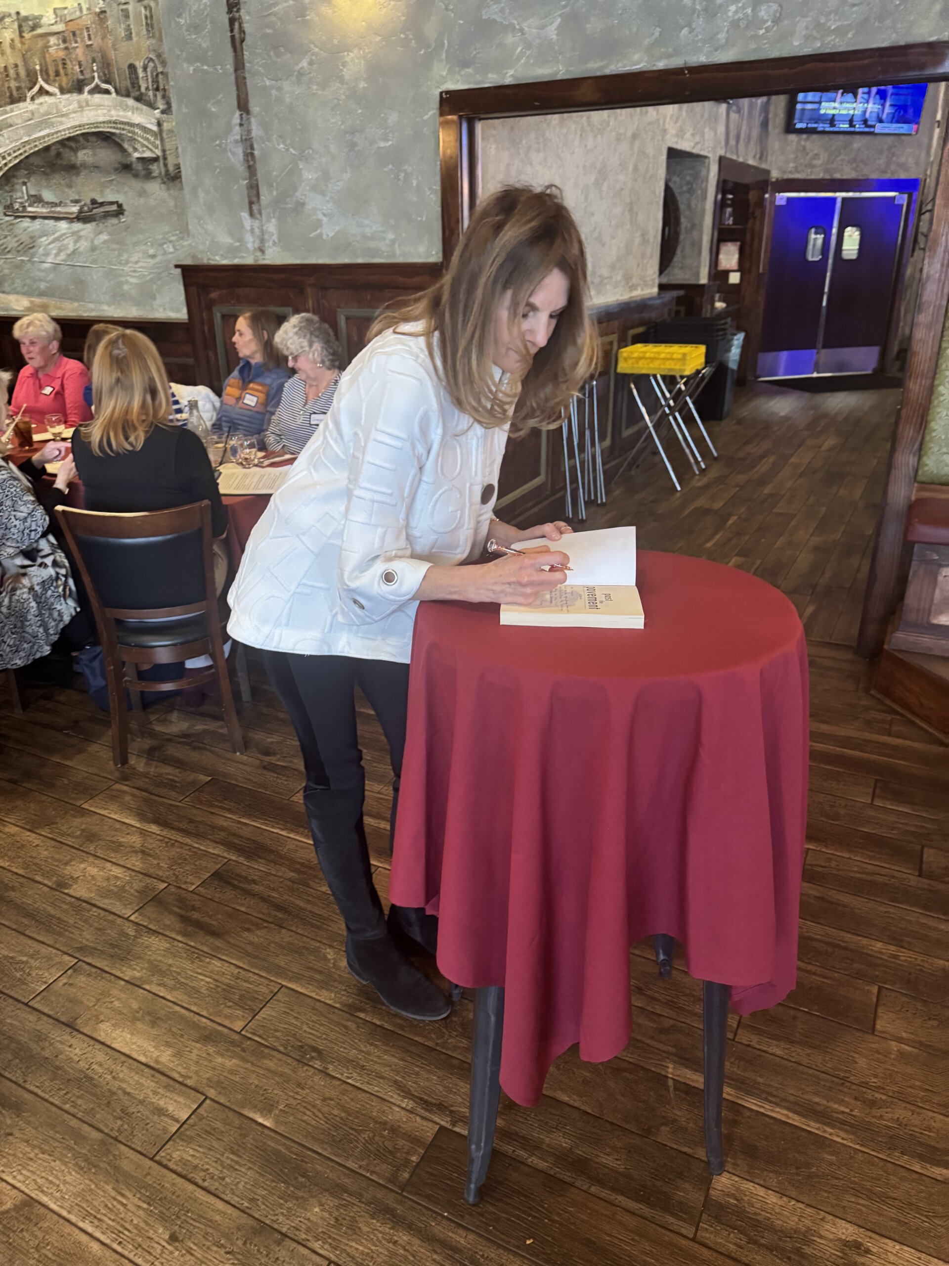 Twenty-six women filled the room, and from the moment the conversation began, you could feel the energy shift. This wasn’t a passive audience. These were engaged readers and thoughtful listeners. These women have enough experience to understand the complexities of love, loss, ambition, and reinvention, which are the themes that echo throughout Robin’s novel. The dynamic Cheryl Benton, founder of The Three Tomatoes, led the interview with warmth and insight, guiding Robin through the emotional layers of her story, from Long Island roots to New York City ambition, from romance to heartbreak, from certainty to mystery.