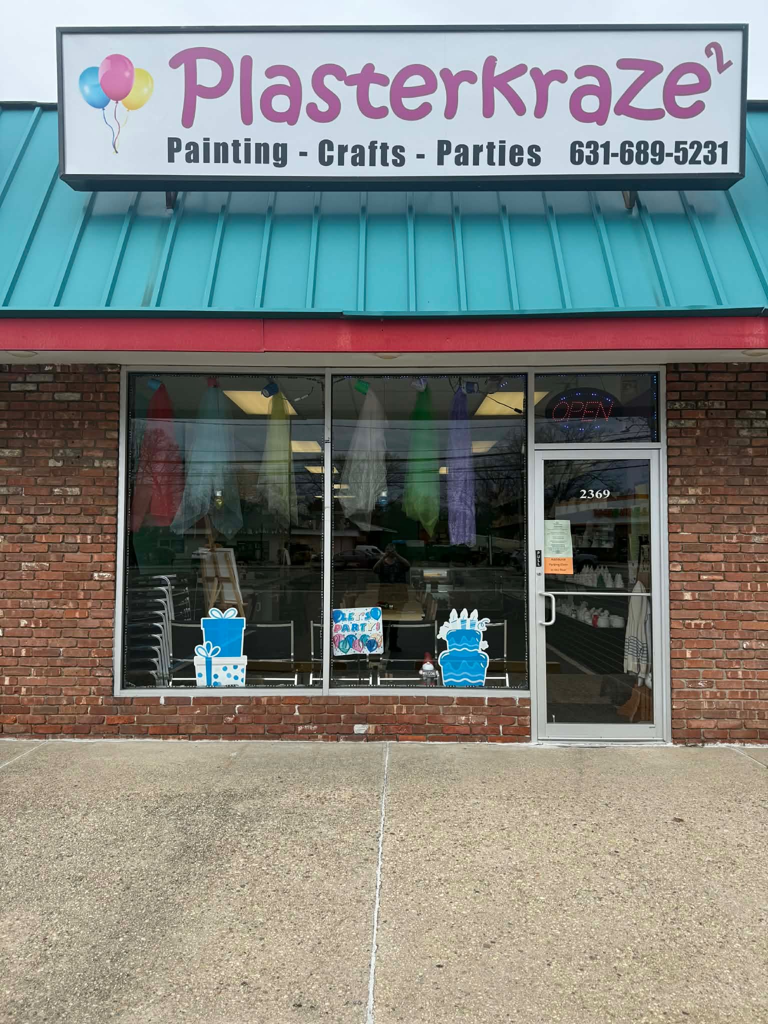 Plasterkraze is located at 2369 Middle Country Road in Centereach. To book a party or a casual event, call Beth at (631) 689-5231.