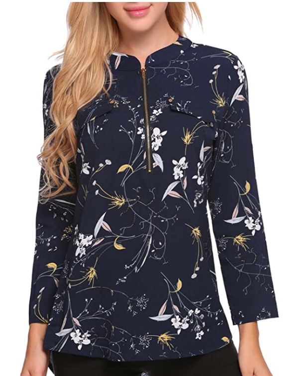 Perfect for now and right into summer. Half zip closure front, rollup or long sleeve. Sexy and fashionable. Amazon $22.99
