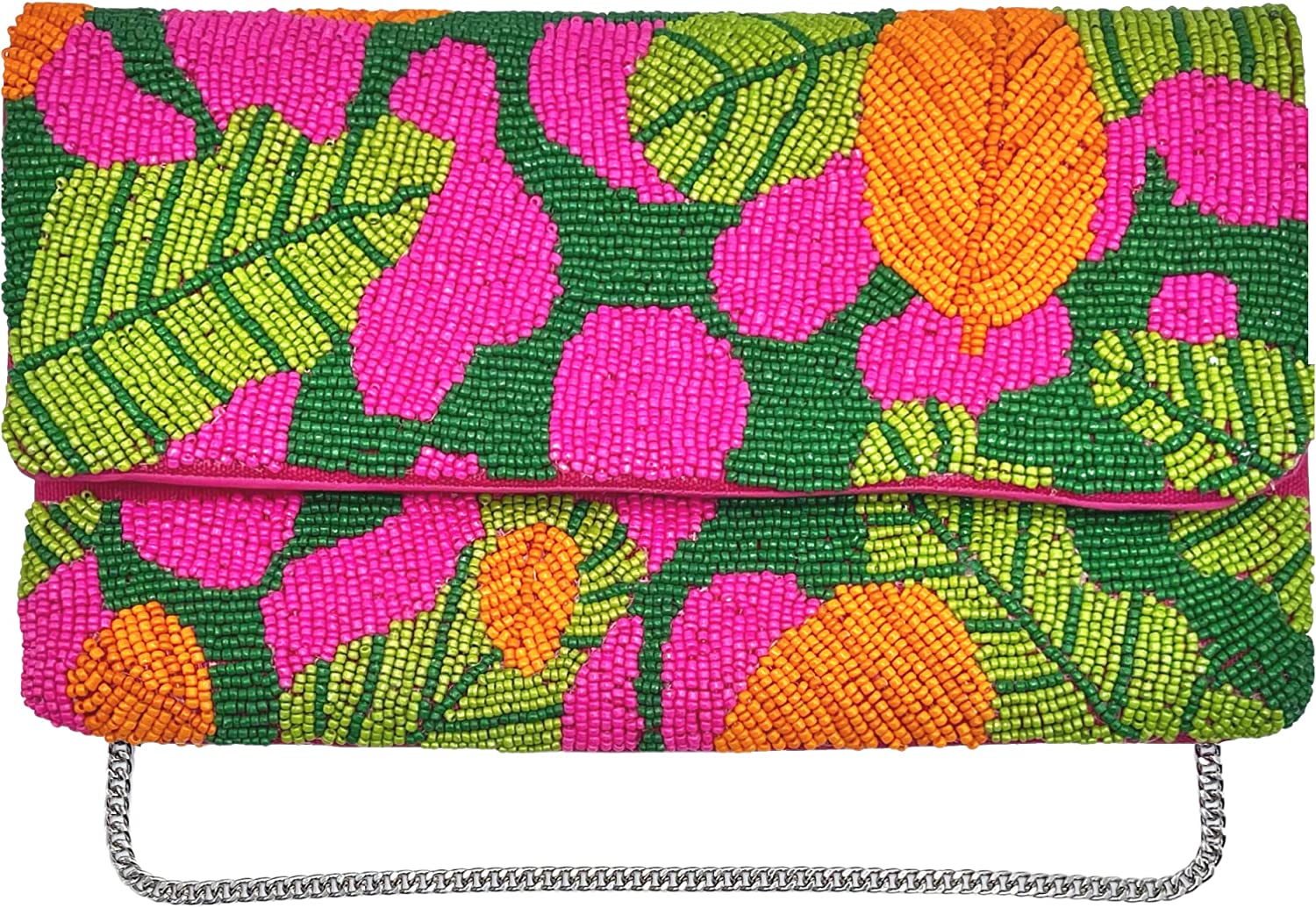 This stylish pink purse with pearl embellishment can be used as a clutch or purse with the included chain strap. This evening bag adds a touch of flair to your summer outings. $57.95 Amazon.