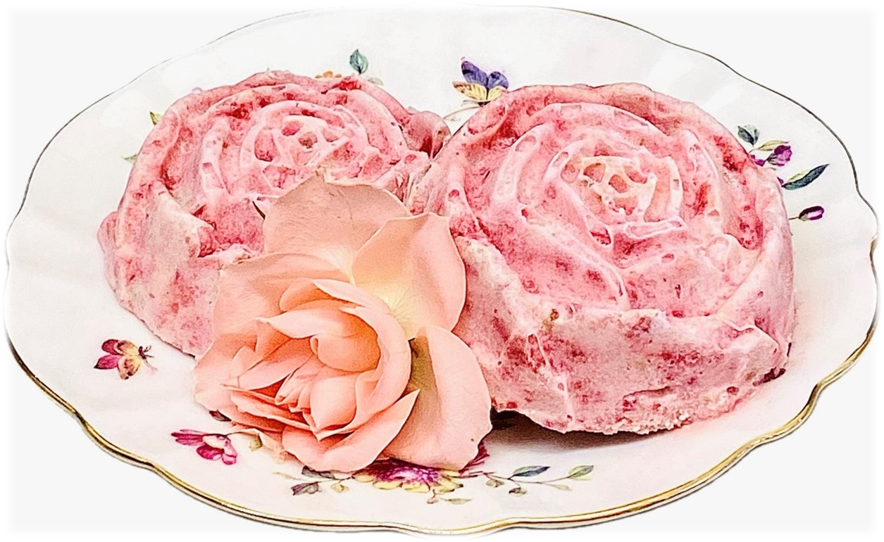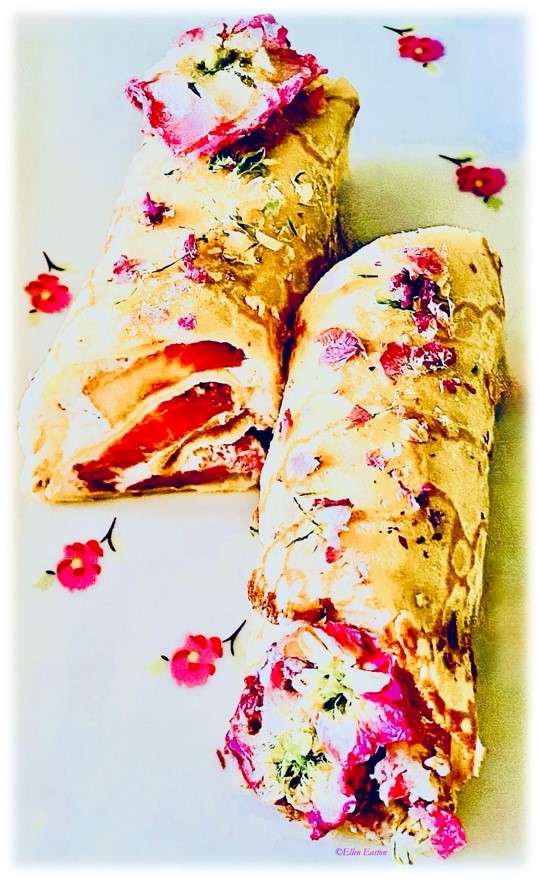 Strawberries are a refreshing treat on a hot summer day. Even better when paired with strawberry~ rose crème folded into a light crepe or as a frozen coconut crumb crème. Add a cup of strawberry infused tea and sit under a shady tree to relax with a good book.