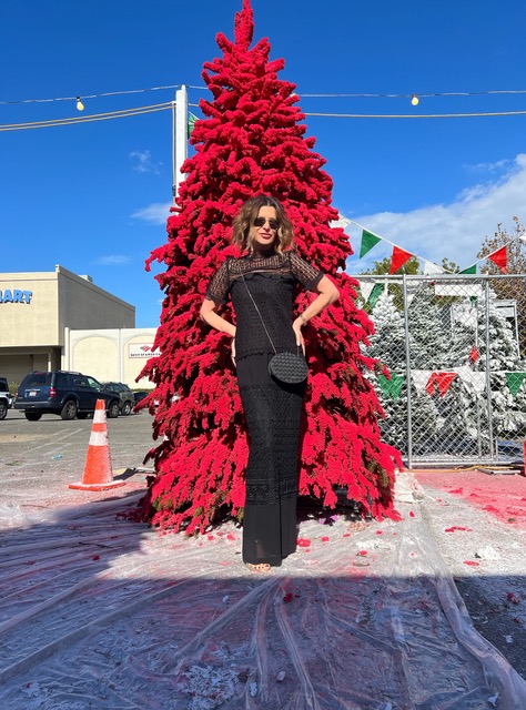 Black for the Holidays? Absolutely but make it special. I bought this silk chiffon embroidered skirt, Colette Dinnigan, from my favorite Beverly Hills store in the 80’s called Moda Sport sadly it no longer exists. The skirt was part of a set that included a sheer chiffon boat neck blouse that I somehow lost. Fast forward to this passed Spring when I found myself at a fabulous vintage shop by my house and spotted the blouse I’m wearing. The allover eyelet embroidery and small chiffon ruffling are a close match to my skirt. As picky as I am about the details, matching blacks embroideries etc., this totally works because it’s mostly about the texture as they have the same kind of look.
