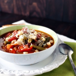 Note: If making a completely vegetarian soup, it is always good to add a Parmigiano-Reggiano cheese rind (I save them in the freezer, like meat bones) for extra flavor. Discard the rind before serving. If using chicken broth, you can also add the rind, but it isn’t as necessary.