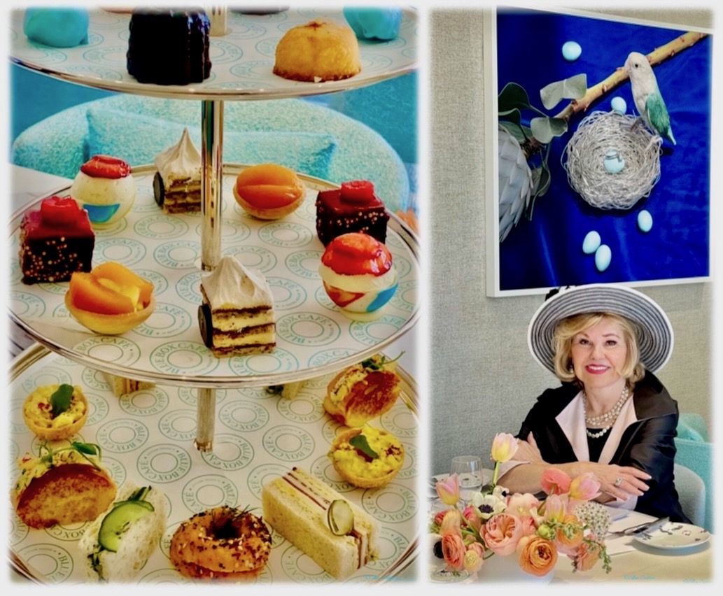 Fellow Three Tomatoes colleague, Anne Akers and I met for afternoon tea nestled within the newly renovated Tiffany’s Blue Box Café™ by New York’s Michelin Star Chef and Restauranter Daniel Boulud. It is in and of itself a work of art. The Tiffany blue and white décor is a cheerful welcome to a robust atmosphere of activity.