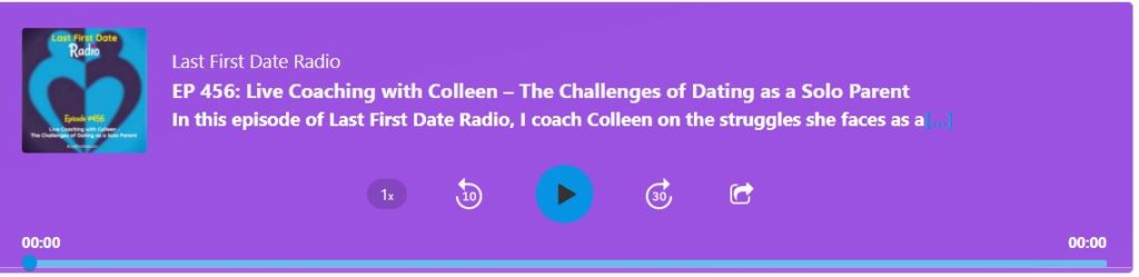In this episode of Last First Date Radio, I coach Colleen on how to deal with the struggles she faces as a solo parent who wants to date. Whether you’re a solo parent, or you’re overwhelmed with a very busy life for other reasons, you’ll gain value from this show.