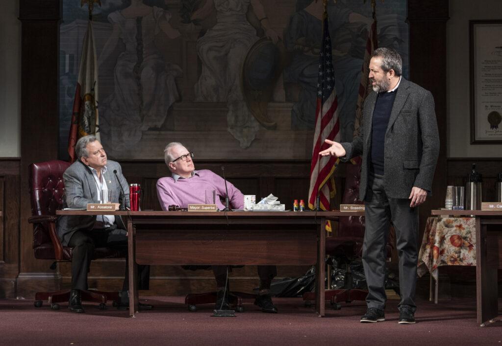 Jeff Still as Mr. Assalone, Tracy Letts as Mayor Superba and Ian Barford as Mr. Carp in The Minutes. Photo credit: Michael Brosilow