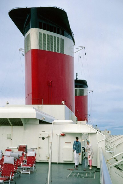 In 1968, I sailed on one of the ship’s final voyages, returning with my family from Europe to the US. My father was an American spy based in Germany, and our fellow passengers were military, diplomatic, or national security civilians. With most commercial passengers choosing to jet across the Atlantic in 1968, US government contracts filled many berths on the SS United States.