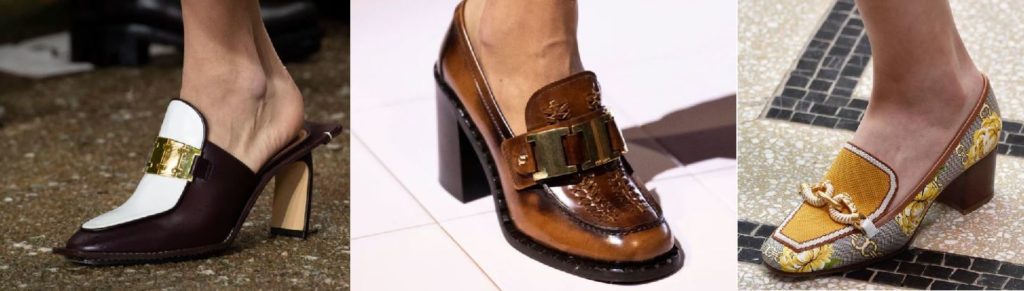 Loafers have made a huge comeback and we are thrilled. Pictured above are a few of the loafers featured on the runway shows. They’re comfy and there are so many fabulous styles you wear them with just about any look. Remember Bass Weejuns? Well Bass Weejun was actually the designer who created the loafer in the 1930s – originally for men, but they were so popular he created a women’s version. And Gucci introduced the tassel loafer in the 1950s. So while the ubiquitous loafer has never really gone out of style, it is back in a big way with some wonderful designs too.