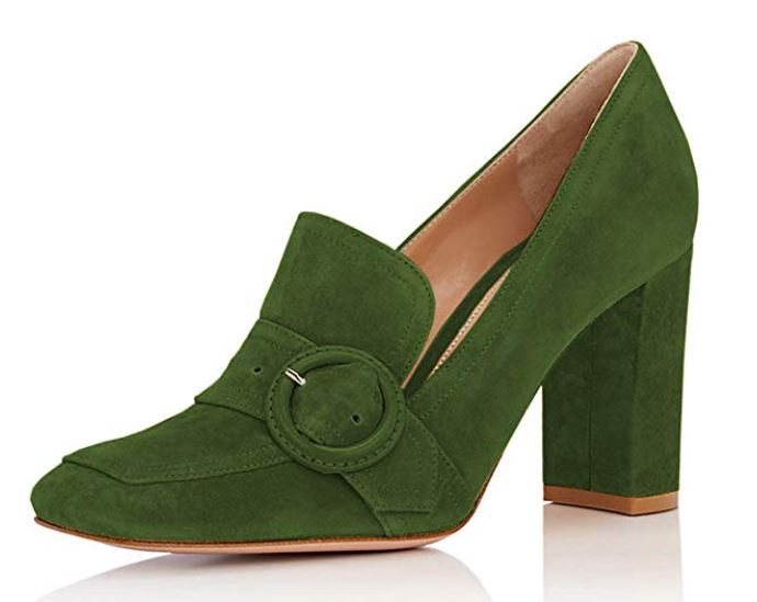 Chunky High Heel Square Toe Loafer. Oh so stylist. Muliple colors. $69.99 Amazon.