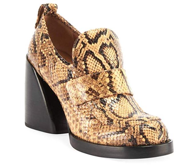 FOWT High Block Heel Square Toe Loafers. Love the snakeskin. $62.99 Amazon.