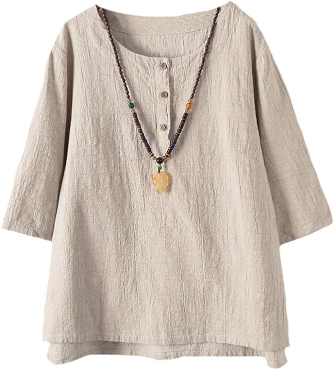 Cozy cotton linen tunic, breathy and durable; Great choice for Date, Casual, Daily life, Work, Vacation, Outdoor, Party, Suitable to wear in spring and summer, it’s leisure, daily, casual style shirts tops. Amazon $29.99