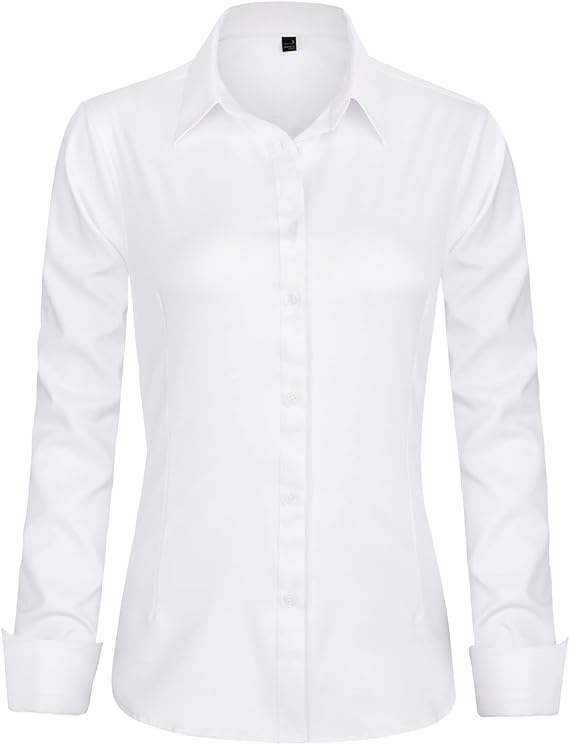 This crisp fitted button down is 62% cotton + 35% polyester fiber + 3% spandex, soft and comfortable, not easy to wrinkle, and simple ironing. Amazon $17.99
