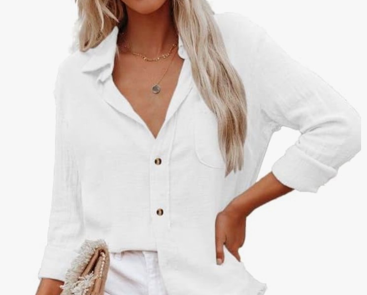 You will love the 100% cotton long sleeve button down shirts that’s made of breathable soft linen, easy to roll up sleeves. Amazon $19.99