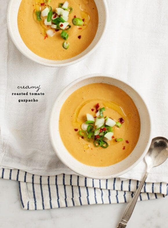 We love cold summer soups, and they’re so easy to make too. You just throw all the ingredients in a blend, mix and then chill!