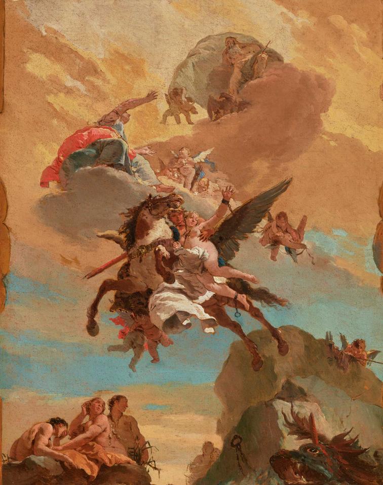 The Frick Collection on East 70th is presenting paintings, drawings, prints and photographs related to Giambattista Tiepolo’s (1696-1770) first significant project outside of Venice, a series of ceiling frescoes painted in 1730-31 for Palazzo Archinto in Milan. I know, you’ve never heard of Tiepolo, but that’s why you should see his work which is so beautiful. Tragically, the frescoes were destroyed during the Allies’ bombing during WW 11.