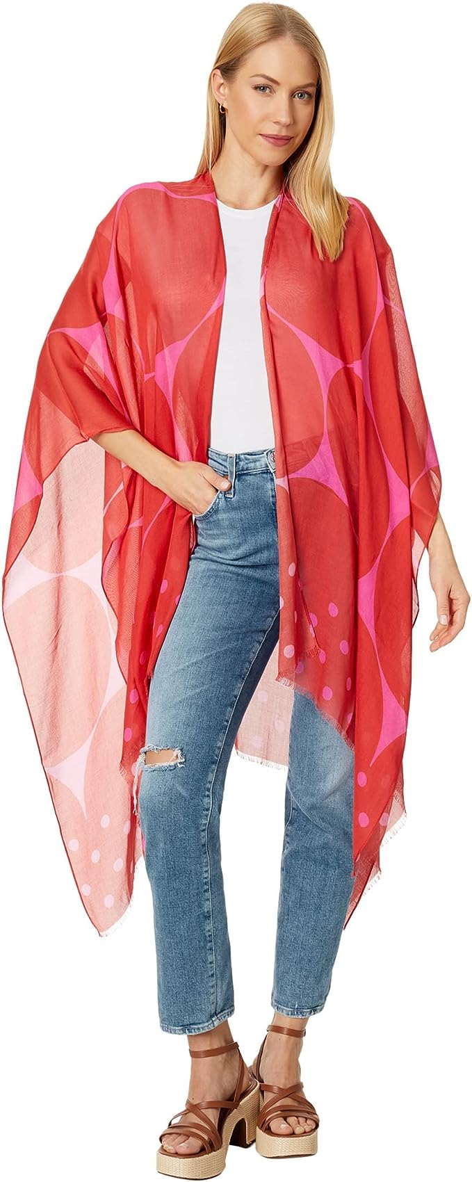 Elevate your sunny day style game with the Kate Spade New York Joy Dot Ruana featuring a charming design with playful, contrasting dots and fringed edges for a fun and stylish look. Amazon $118.