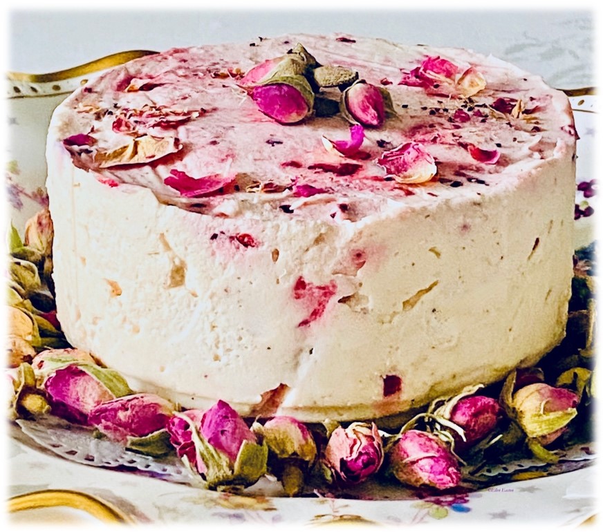 Preparation: In a double boiler melt the white chocolate. Set aside. In a small saucepan, combine 1/4 cup cream and sugar; cook over a medium heat until small bubbles form around the sides of pan but do not allow to boil. In a separate bowl, mix a small amount of the hot mixture into the egg yolks. Add the mixture into the saucepan. Stir constantly over a low heat until the mixture is thick enough to coat the back of a wood or metal spoon. Do not allow to boil. Immediately remove from heat. Stir in chocolate until smooth. Add vanilla extract and rose water. Transfer all into a large bowl; cool 10 minutes. In an electric mixer beat the remaining 1 cup cream until whipped soft peaks form. Fold in the whipped cream into the white chocolate mixture. Place into the serving dish of choice ~ dessert ramekins, glasses, bowl, spring form pan. Cover with cellophane wrap. Refrigerate for a minimum of one hour. Serves 4.