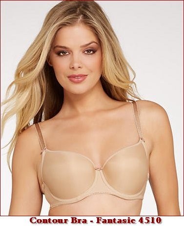 “A Contour Bra is a bra with a shaped cup that has fiberfill or foam lining. These are highly structured cups that retain the shape of a breast, even when removed from the body. Generally, contour bras have an underwire and can sometimes be known as T-shirt bras. Not to be confused with Molded-cup bras, contour bras have a sculpted look that can also help to reduce “high-beams”. When being worn, they have the advantage of using their shape to improve yours. Materials such as fiber-fill or a foam lining help to strengthen the shape of the natural breast.