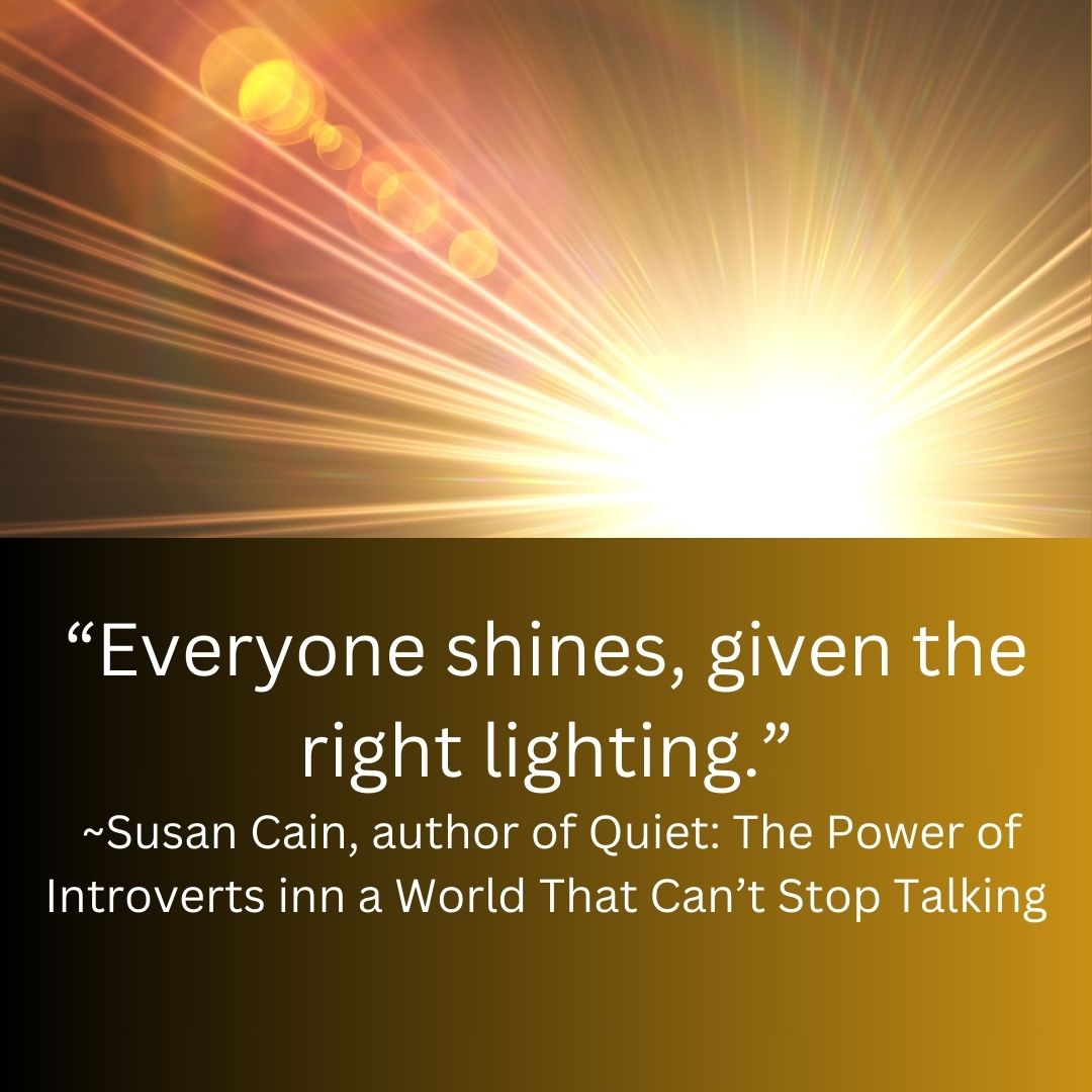 As author Susan Cain memorably says, in the right lighting, we all shine.