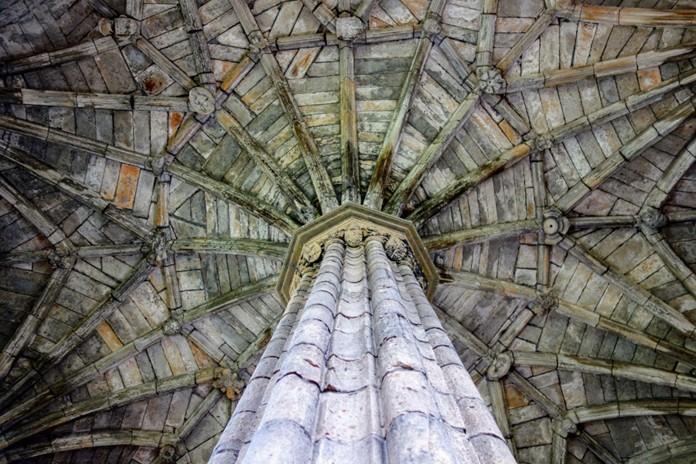 The vaulted ceiling of Elgin Cathedral’s chapter house