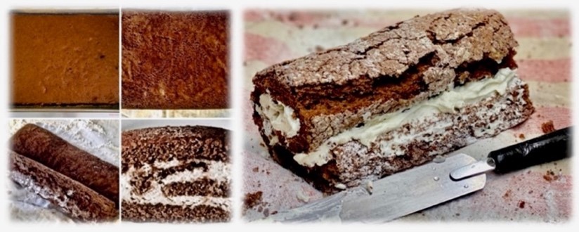 Preparation: Pre Heat oven to instructions on the box. Use a dry 15.5 inch by 10.5-inch jelly roll pan. Place all ingredients into an electric mixer. Beat together but do not over mix. Using a spatula spread the mixture into the prepared pan. Bake as per the instructions. Watch closely so the batter doesn’t burn. Sift powdered sugar onto a large tea towel. Turn the cake pan upside down out onto the towel. Allow to cool. Using a spatula or flat knife gently ease the cake out of the pan onto the sugared tea towel. Roll up immediately in the tea towel from the long side. Seam side facing down cool on a wire rack.