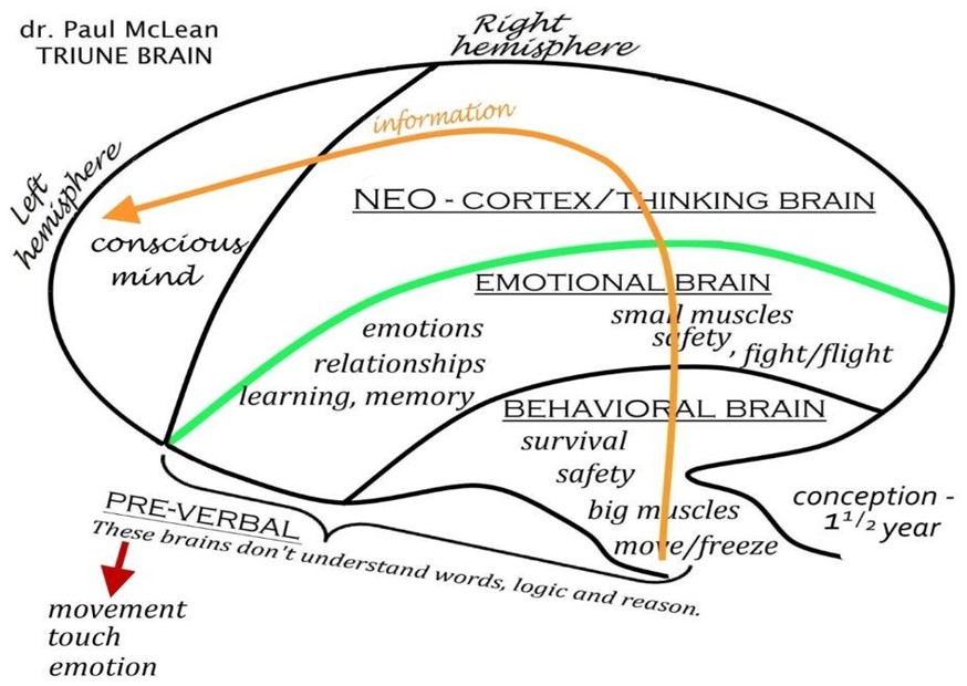 The brain that takes care of that is called the limbic system and it’s a part of the Triune Brain model developed by Dr. Paul Mc Lean.
